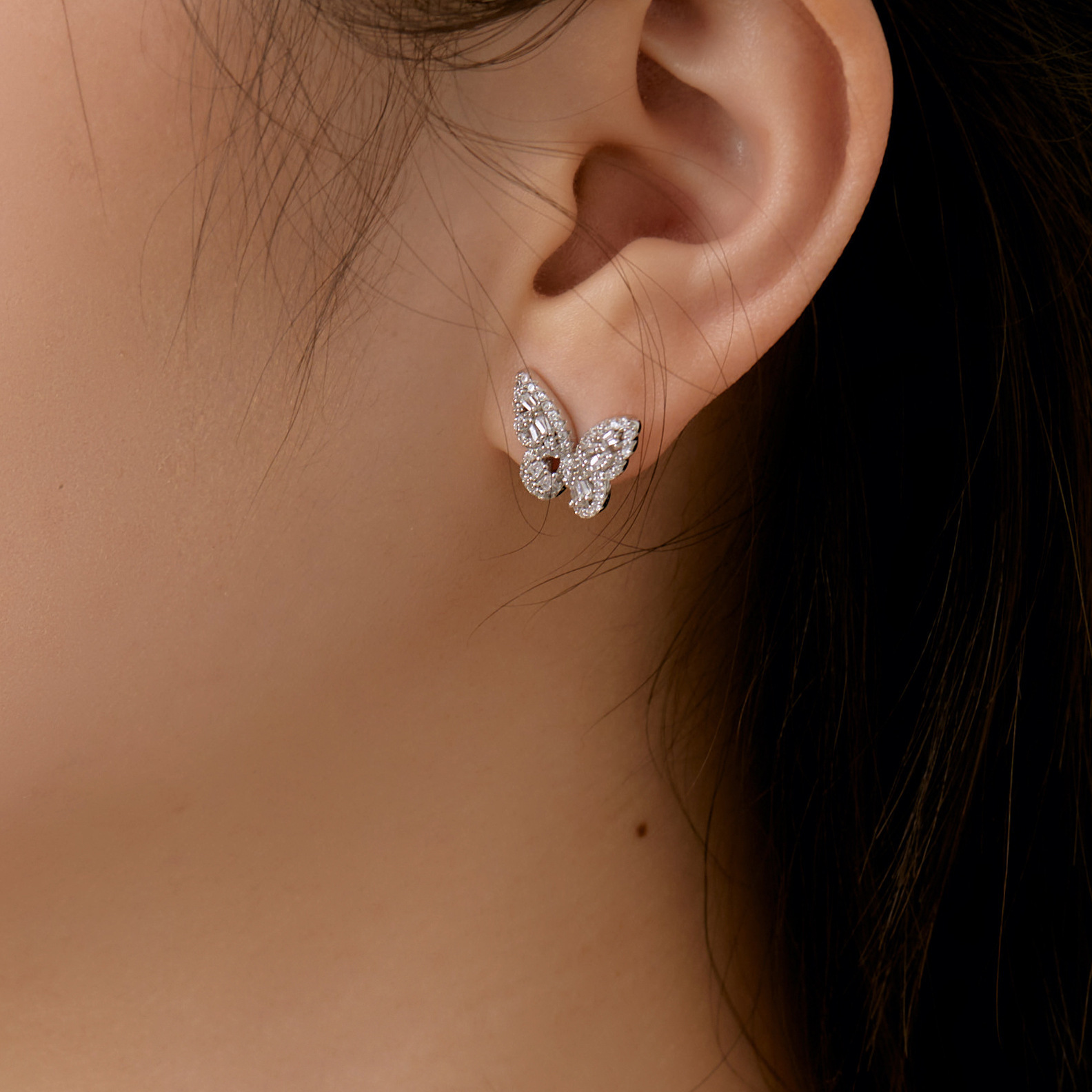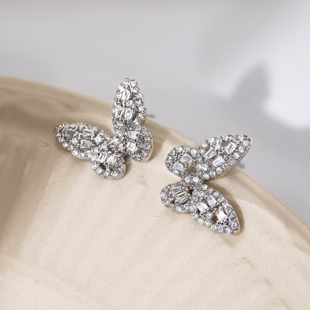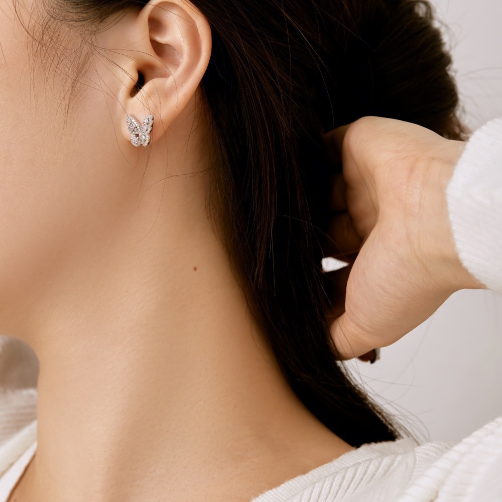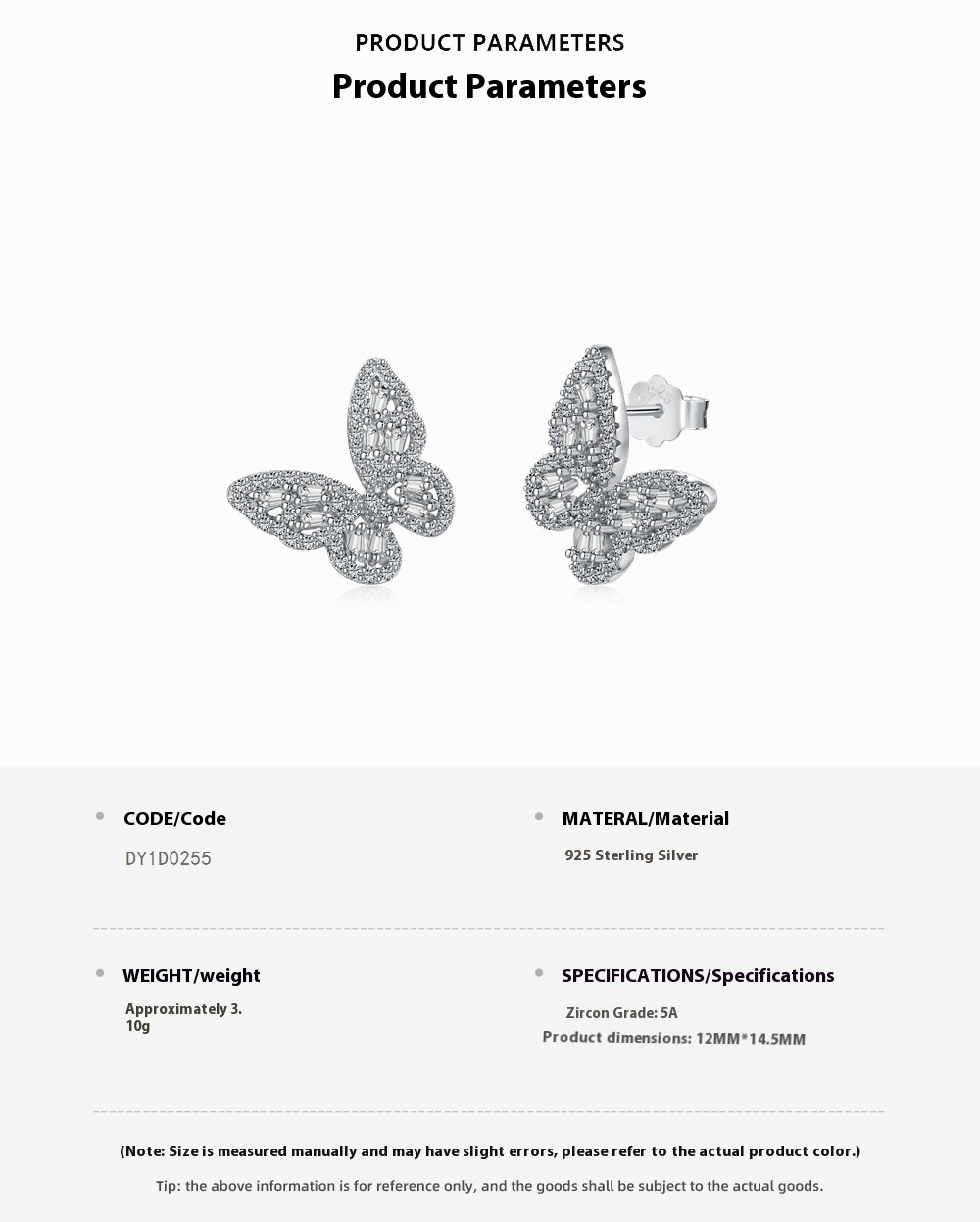 S925 Sterling Silver Stud Earrings Female Zircon Inlaid